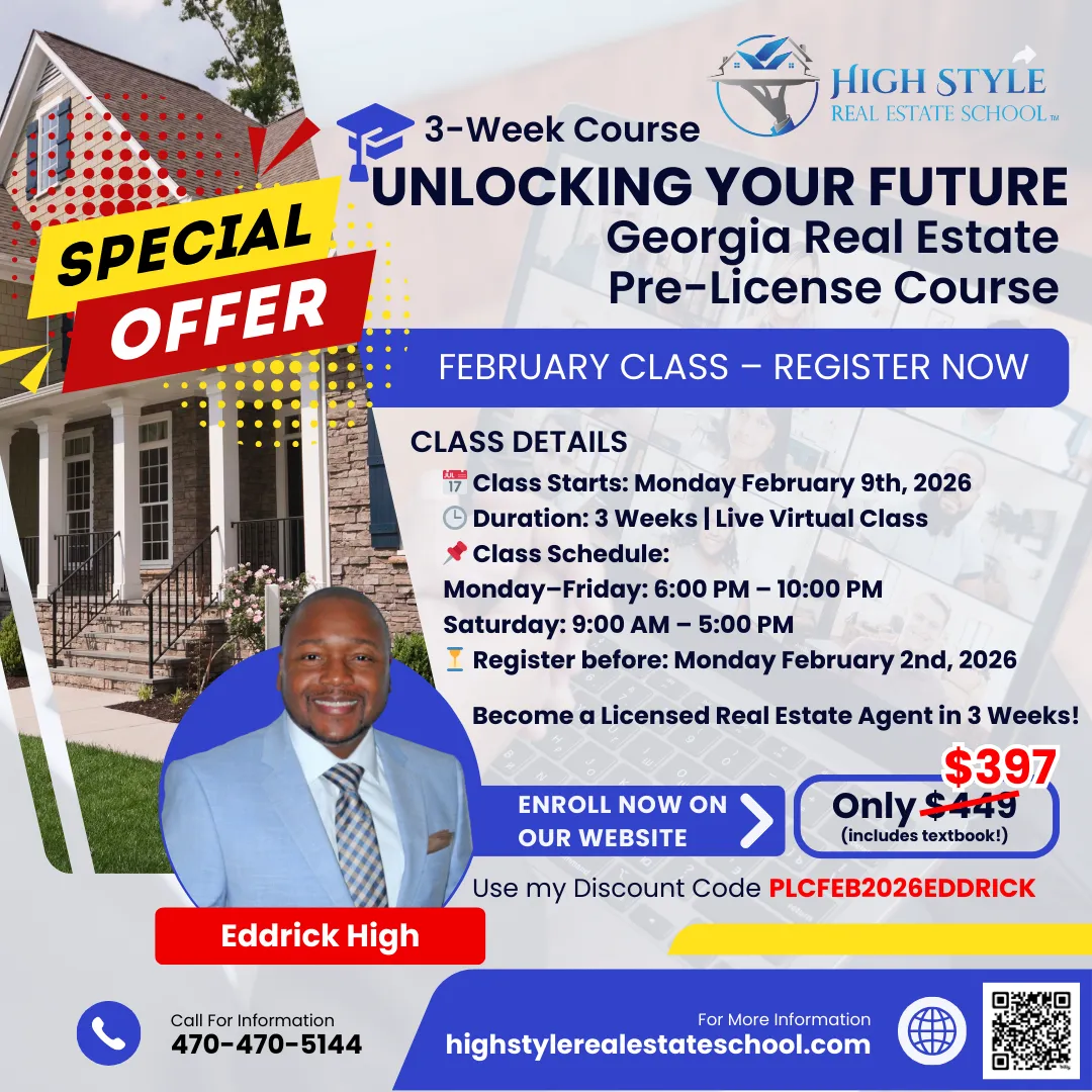 Are you ready to turn your passion for real estate into a powerful, professional career? At High Style Real Estate School, LLC, we don’t just help you meet Georgia’s licensing requirements—we help you rise above them.